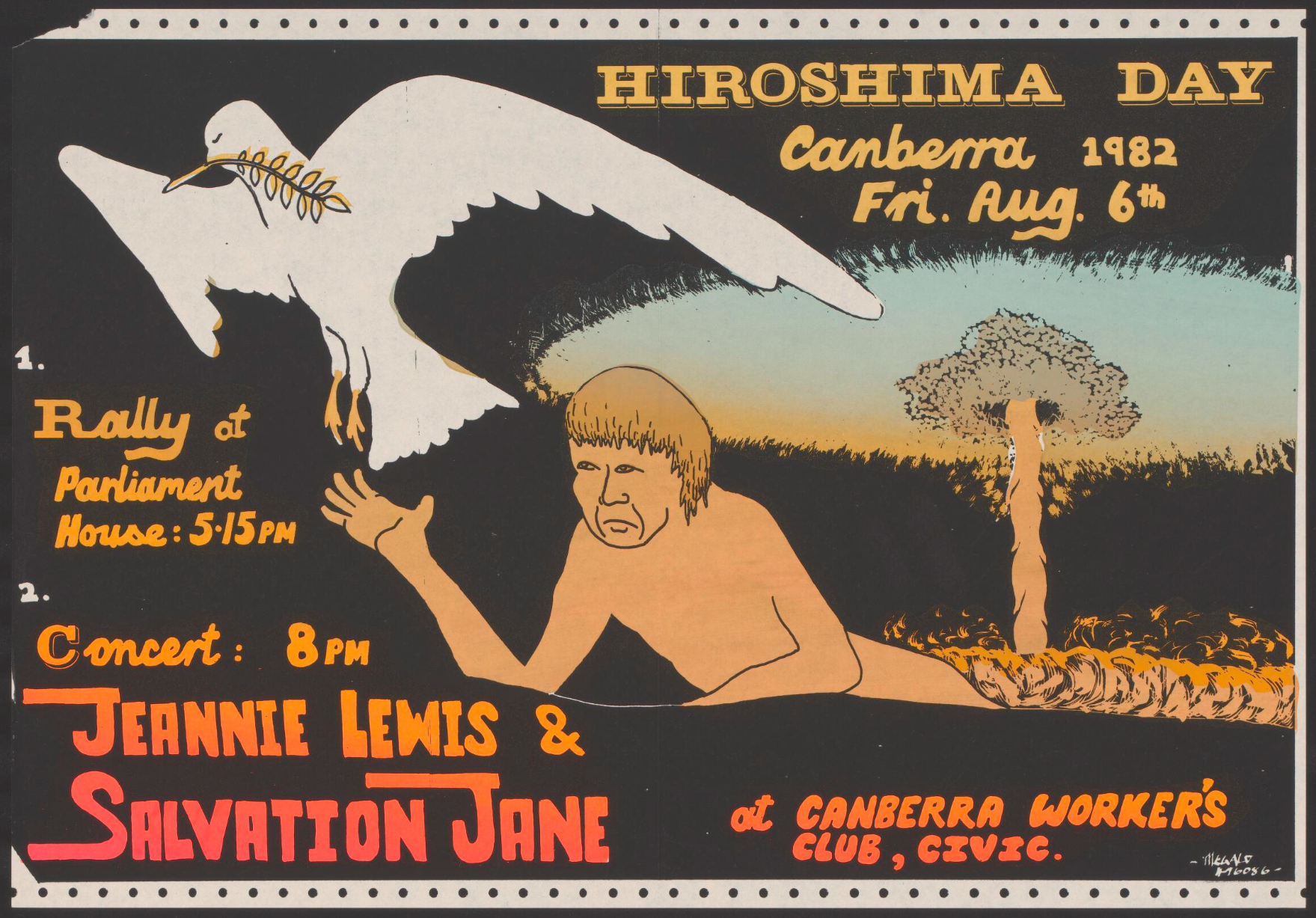 When Salvation Jane were asked to perform at Canberra’s 1982 Concert for Peace to commemorate Hiroshima Day they decided to add a multimedia dimension. This was a highly innovative concept for a Canberra rock band at that time.